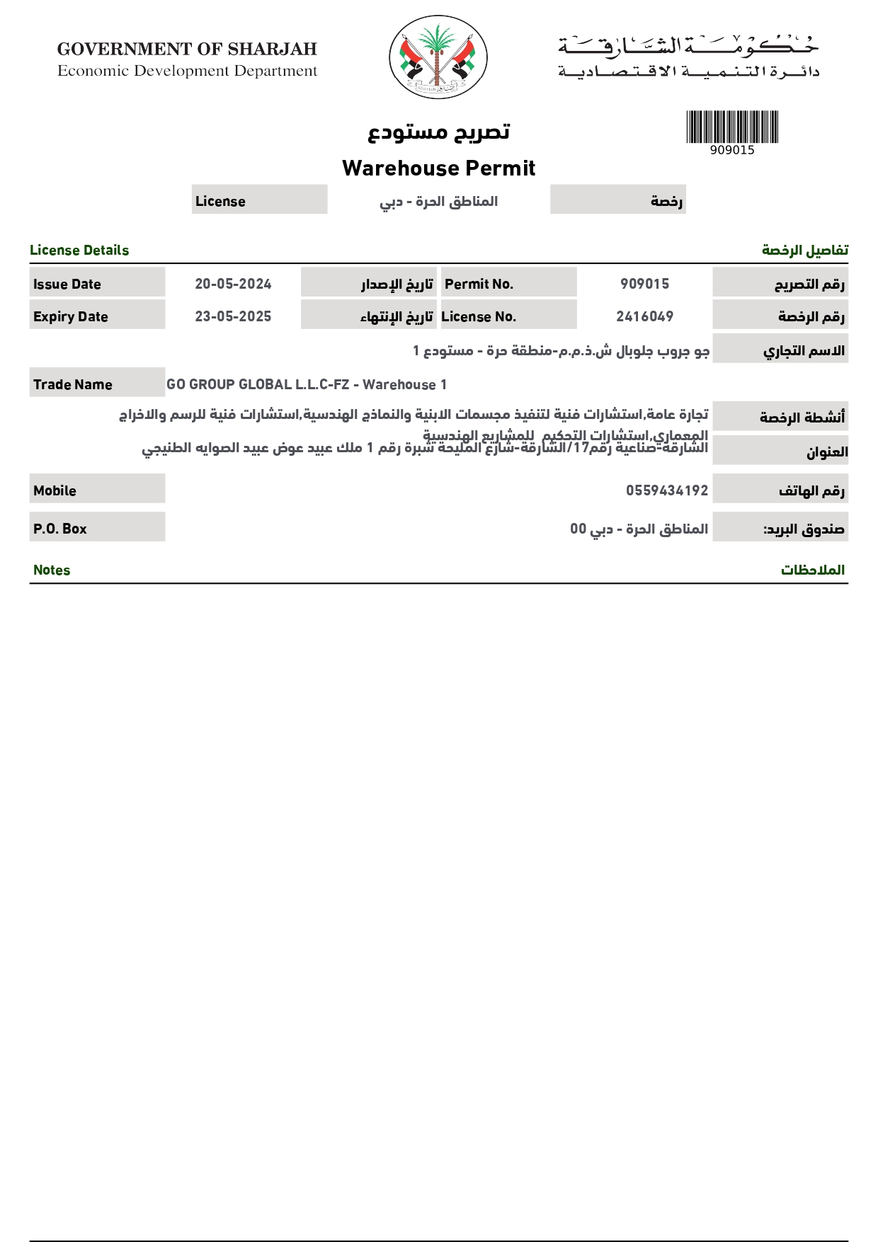 Warehouse Permit